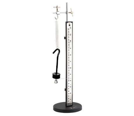ศึกษาความสัมพันธ์เชิงเส้นระหว่างแรง (น้ำหนัก) กับระยะยืดตัวของสปริงที่แขวนแบบมีเข็มชี้ ติดตั้งบนฐาน พร้อมมวลน้ำหนักขนาด 20 กรัม 4 อัน สูง 40 ซม.
