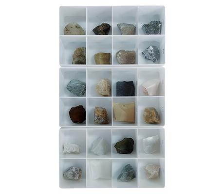 ตัวอย่างหิน-แร่ ที่พบในประเทศไทย ประกอบด้วยหินและแร่ ขนาดก้อนใหญ่พิเศษ 24 ชนิด บรรจุกล่องพลาสติก พร้อมรายละเอียดของแต่ละชนิด