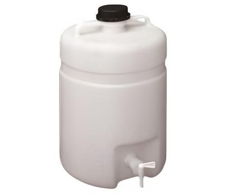 ความจุขนาด 25 ลิตร ผลิตจากพลาสติก HDPE (High-Density Polyethylene) มาพร้อม ฝาเกลียวแบบมีหูหิ้ว มีก๊อกเปิด-ปิด