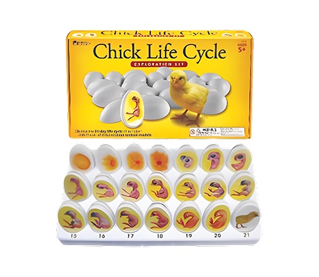 ภายในไข่จำนวน 21 ฟอง ขนาดไข่ 2.75 นิ้ว แต่ละฟองแสดงการเจริญเติบโตของตัวอ่อนในแต่ละวันอย่างชัดเจน โดยฟองสุดท้ายแสดงลูกไก่ที่ฟักออกมา