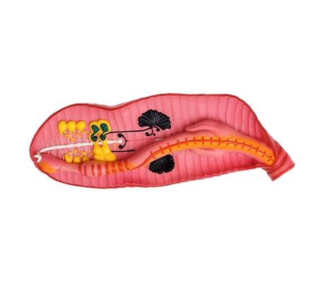 หุ่นจำลองโครงสร้างภายในไส้เดือนแสดงระบบย่อยอาหาร, ระบบเลือด, ระบบประสาท และระบบสืบพันธุ์ของไส้เดือน ขนาด 56x20x6 ซม.