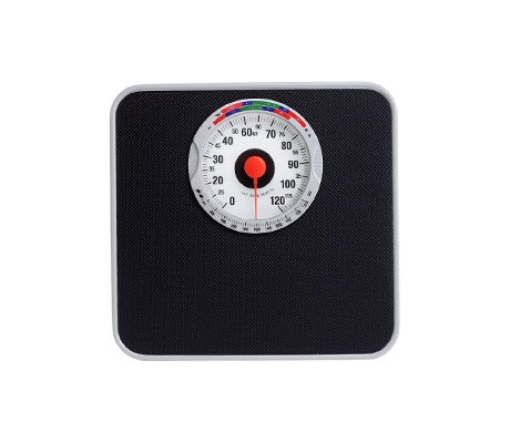 ชั่งได้สูงสุด 120 กก. ความละเอียด 1 กก. หน้าปัดขนาด 13 ซม. อ่านค่าน้ำหนักได้ชัดเจน ตัวเครื่องขนาด 26.3x26x5.5 ซม.
