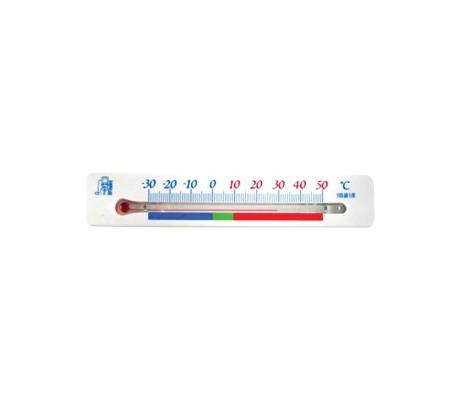 เทอร์โมมิเตอร์สำหรับตู้เย็นหรือตู้แช่ ใช้วัดอุณหภูมิในช่วง -30~50°C ขนาด 140×27 มม. มีแถบแม่เหล็กด้านหลังสำหรับติดบนพื้นผิวโลหะ