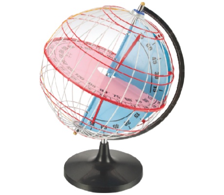 แสดงเส้นรุ้งเส้นแวงของโลก ใช้ศึกษาการบอกตำแหน่งภูมิศาสตร์และการแบ่งเขตภูมิอากาศ