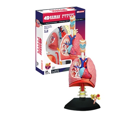 หุ่นจำลองระบบทางเดินหายใจ 1:3 มีส่วนโปร่งใสแสดงภายในและถุงลมปอด ถอดประกอบได้ 41 ชิ้น ขนาด 114x106x200 มม. พร้อมฐานตั้ง