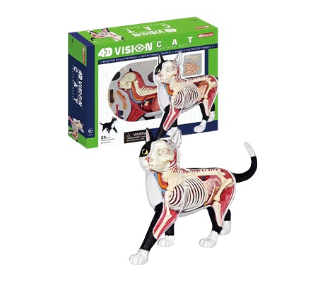 หุ่นจำลองกายวิภาคแมว (ขาว-ดำ) ถอดประกอบด้วย 28 ชิ้น พร้อมชิ้นส่วนโปร่งใส แสดงโครงกระดูกและอวัยวะภายใน ขนาด 285x75x180 มม.