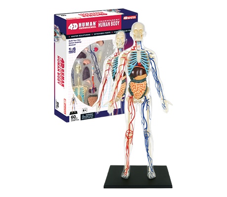 หุ่นจำลองร่างกายมนุษย์โปร่งใส 1:6 โครงกระดูกและอวัยวะถอดได้ พร้อมเส้นเลือดหลัก ถอดประกอบได้ 60 ชิ้น ขนาด 155x55x340 มม. พร้อมฐานตั้ง